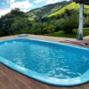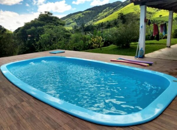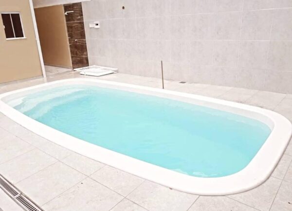 Piscina de fibra com tripla camada de proteção. Modelo com aproveitamento incrível de seu espaço, com banco, escada, aumentando desta forma a área útil da piscina, dando maior espaço para brincadeiras com a família. Piscina acompanha: filtro e bomba Cascata paraná 2 pontos de Hidromassagem 1 led azul 1 kit aspiração