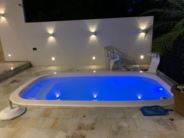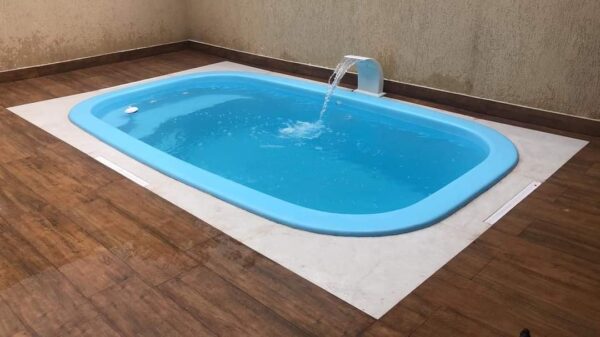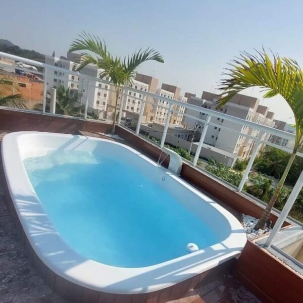 Piscina de fibra com tripla camada de proteção. Modelo com aproveitamento incrível de seu espaço, com banco, escada, aumentando desta forma a área útil da piscina, dando maior espaço para brincadeiras com a família. Piscina acompanha: filtro e bomba Cascata paraná 2 pontos de Hidromassagem 1 led azul 1 kit aspiração