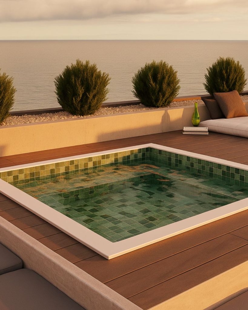 Com tons que remetem às pedras naturais e às águas verdes cristalinas, esse acabamento traz profundidade e elegância ao projeto. É a escolha de quem deseja uma piscina com atmosfera tropical, viva e sofisticada. O efeito final é de água luminosa, com nuances naturais e sensação de refúgio paradisíaco.